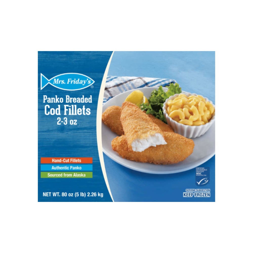 Filetes de bacalao rebozados en migas de Panko, de 2 a 3 onzas, congelados