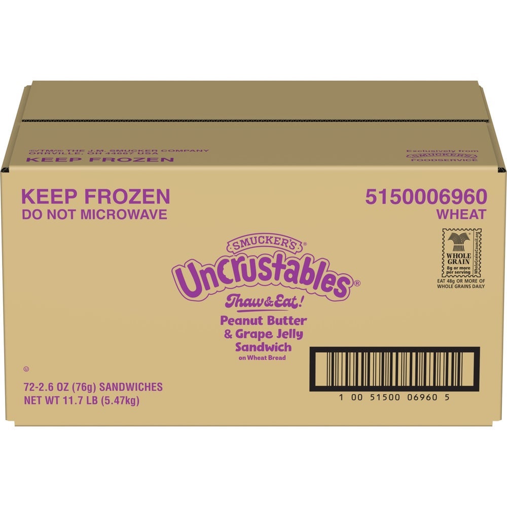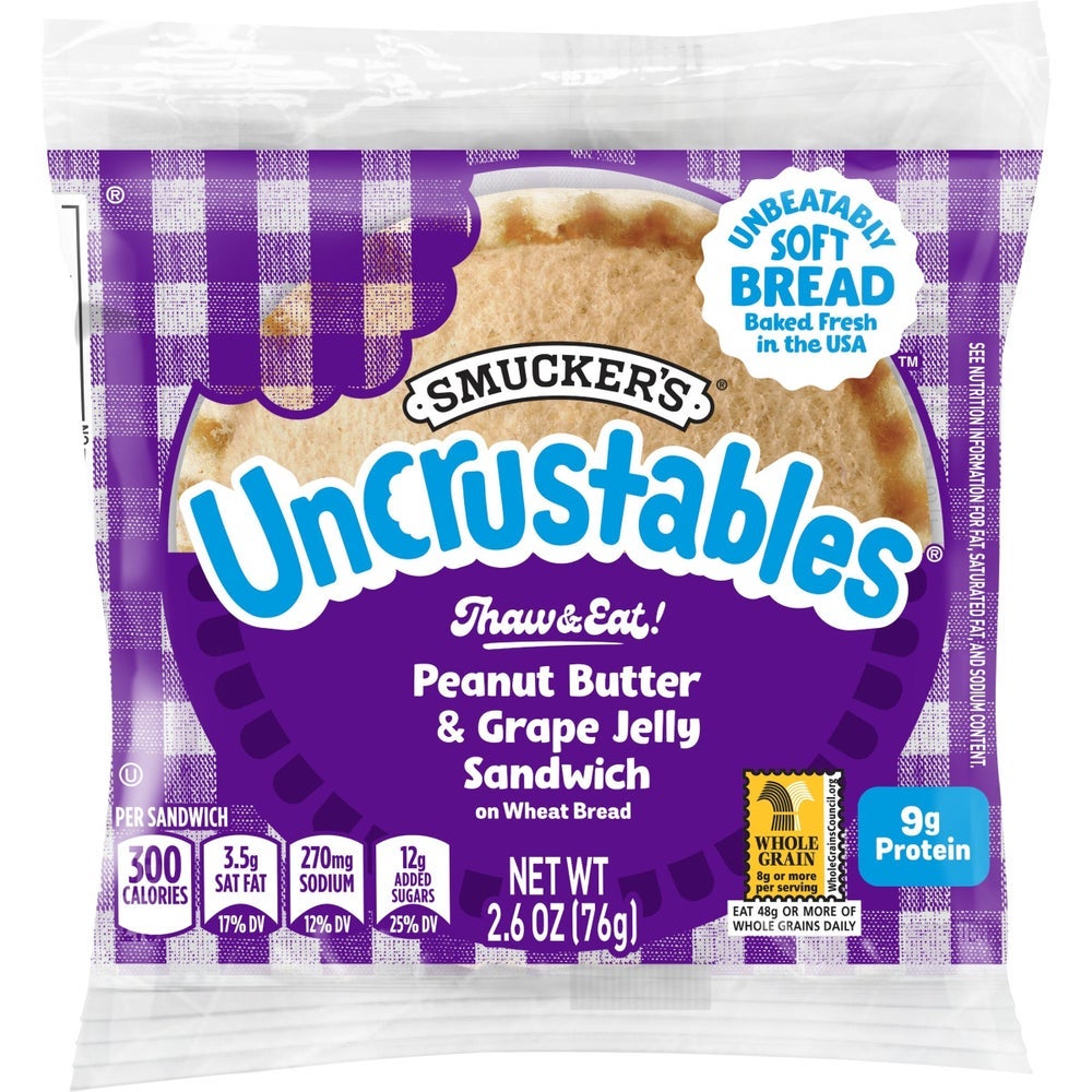 Sándwiches Uncrustable integrales de mantequilla de maní y mermelada de uva, congelados, 2.6 onzas