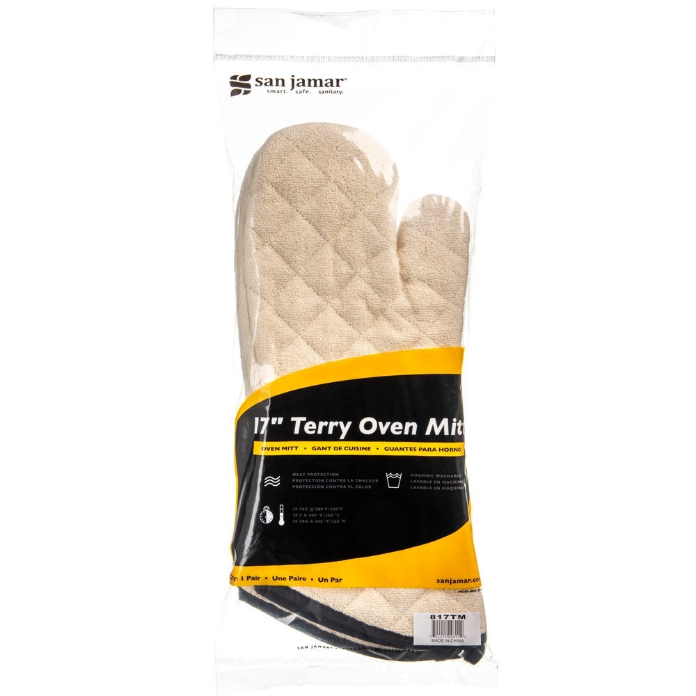 Manoplas de horno extra gruesas, natural, 17 pulgadas, toalla 100 % algodón con forro de silicona, 2 Cdd Par, 1/Paq