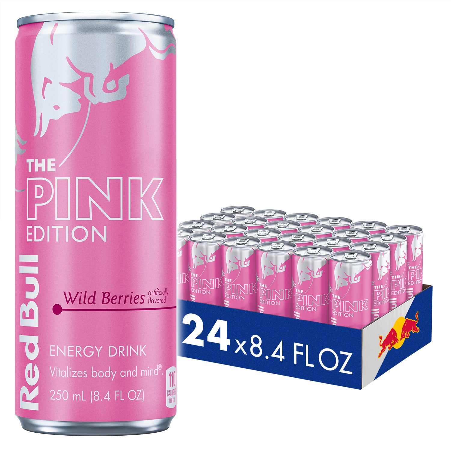 Bebida energética Wildberry Pink, porción individual, lata de 8,4 onzas líquidas, 24/Caj