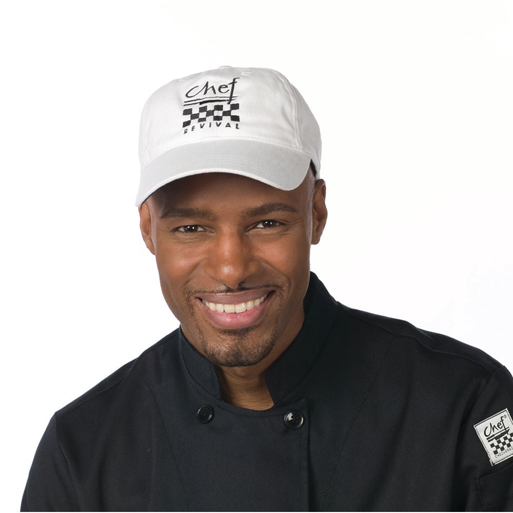 Gorra de chef tipo béisbol, blanco, sarga de algodón, con tira ajustable, 1/Cda