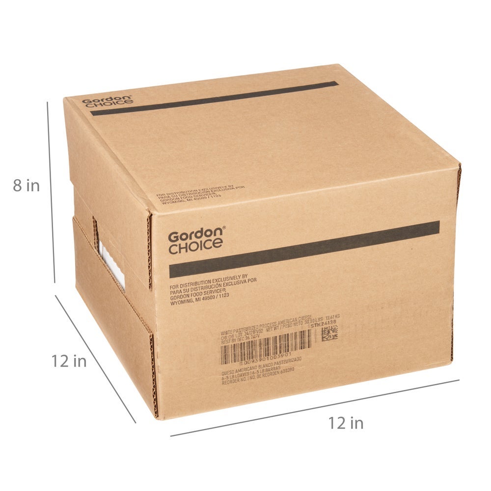 Queso americano de fácil derretimiento, proceso pasteurizado blanco, 5 Libr Bar, 6/Caj