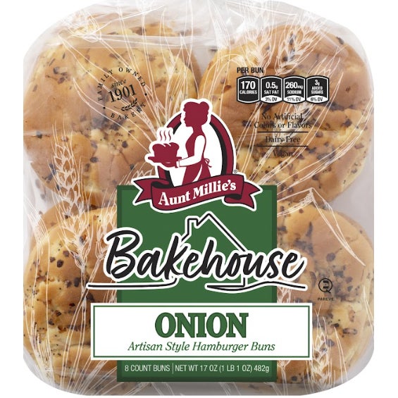 Panes de hamburguesa de cebolla, 2.12 oz cada uno, 8/caja
