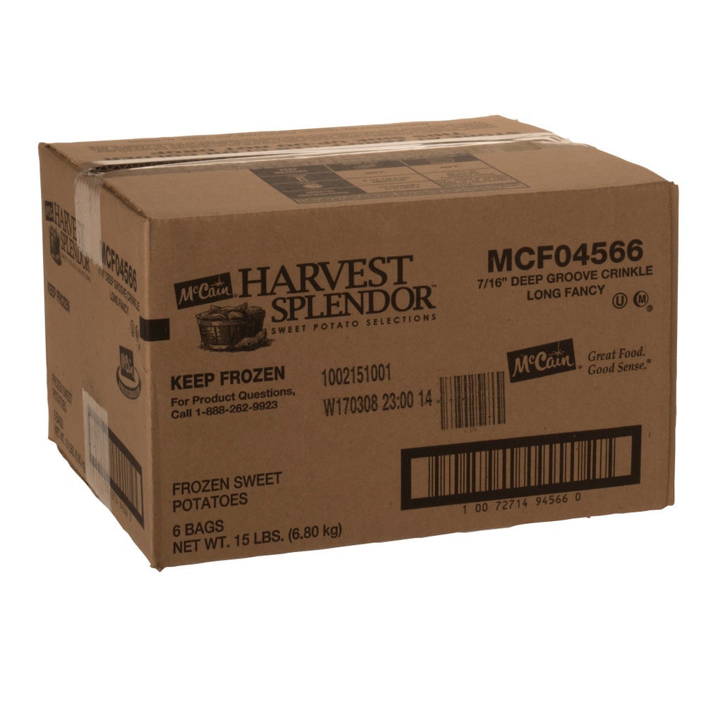 Papas fritas de boniato cortadas onduladas de lujo extra largas de 7/16 de pulgada, rebozadas, horneables, congeladas, 2.5 Libr Bol, 6/Caj