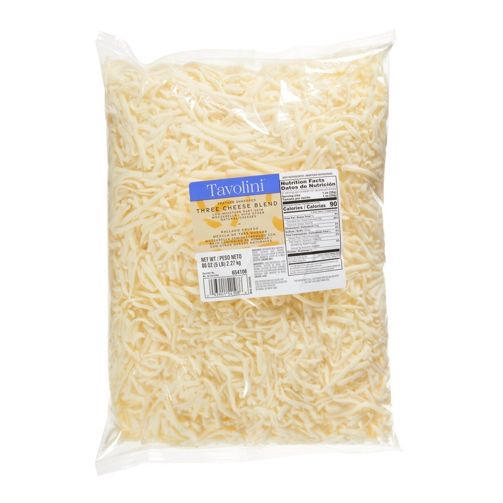 Mezcla de quesos, Mozzarella/Provolone/Münster, rallado fino, 5 Libr Bol, 4/Caj