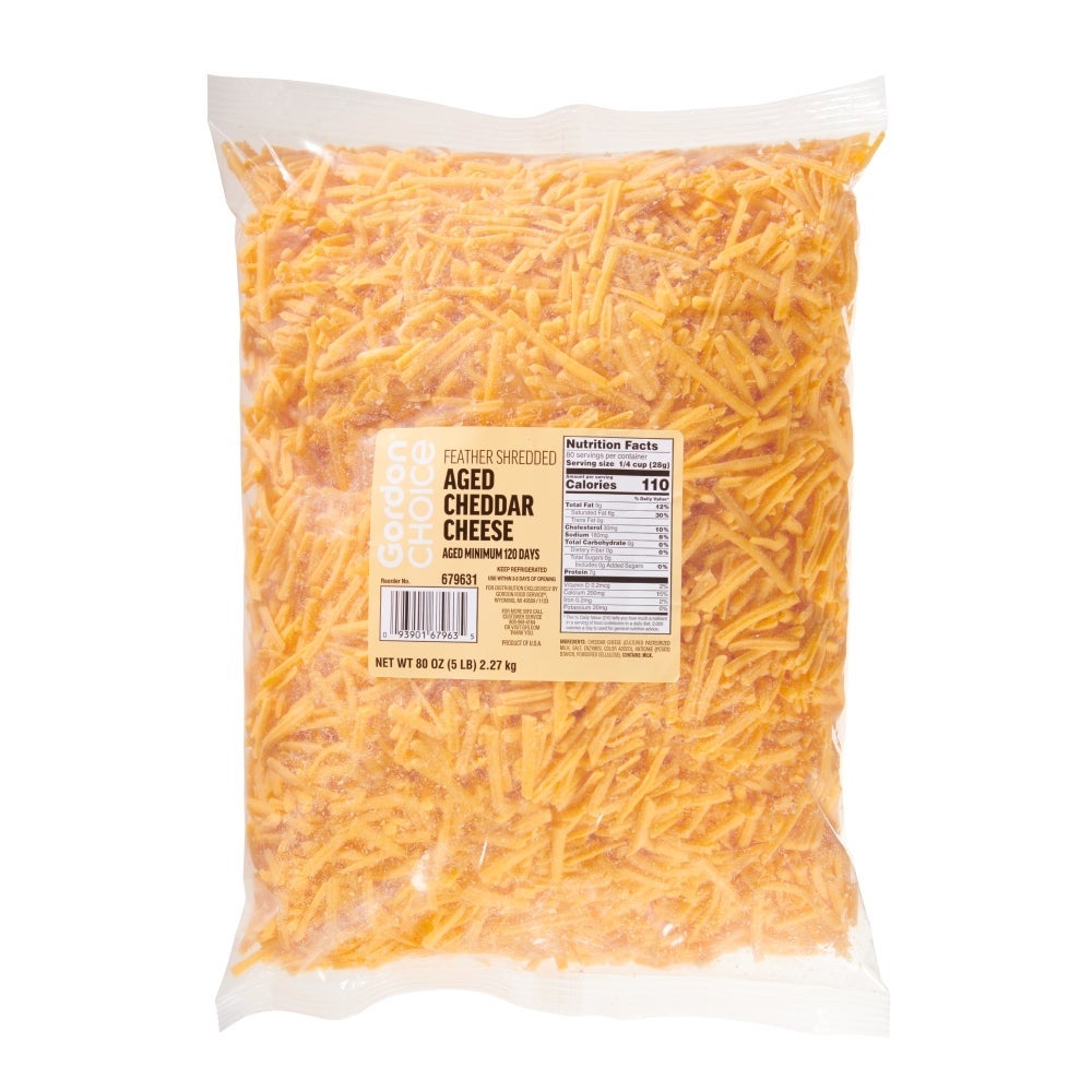 Queso cheddar añejado, rallado en plumas, 5 Libr Bol, 4/Caj