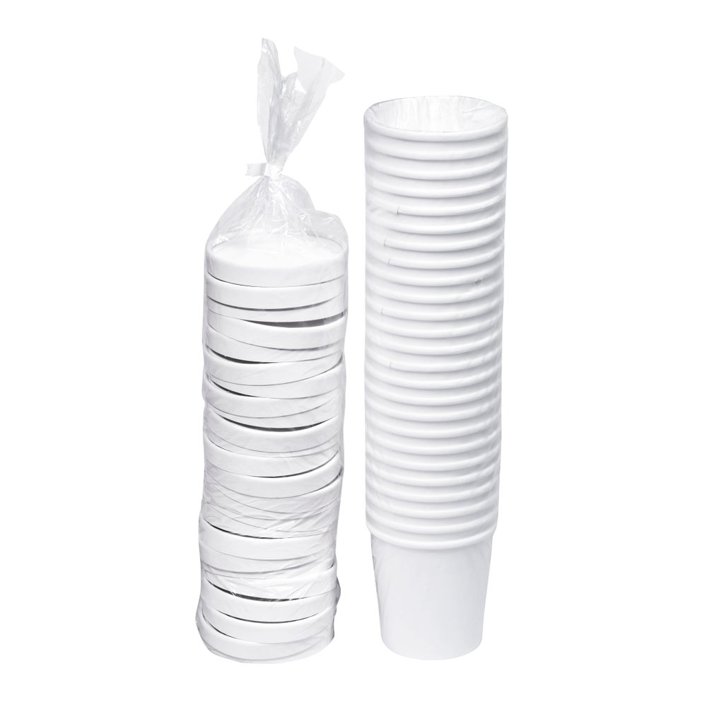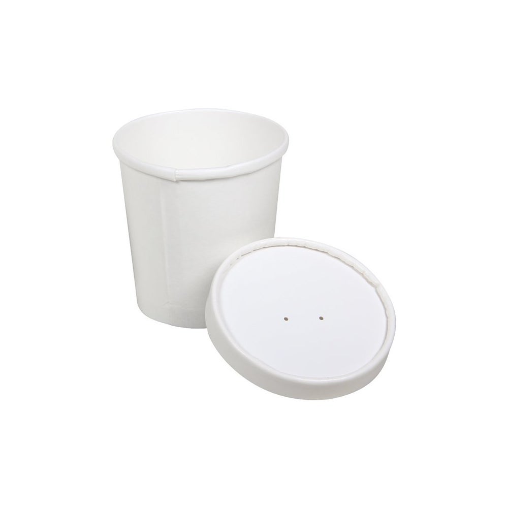 Containers, Soup, 16 Ounce, Coated Paper, White, with Lids, 25 Ct Bag, 10 Per Case
