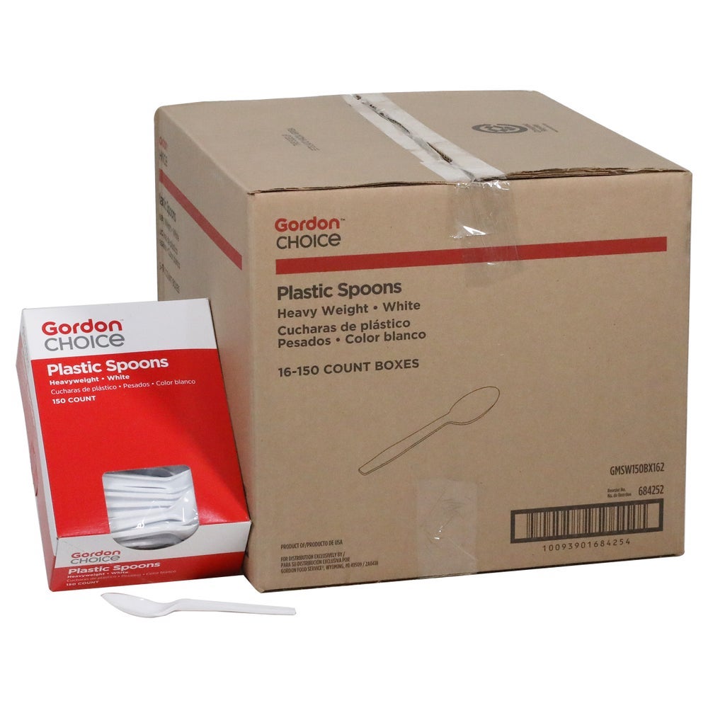 Cucharas de plástico de alta resistencia, blancas, con mangos de longitud media, poliestireno, 150 Cdd Cjs, 16/Caj