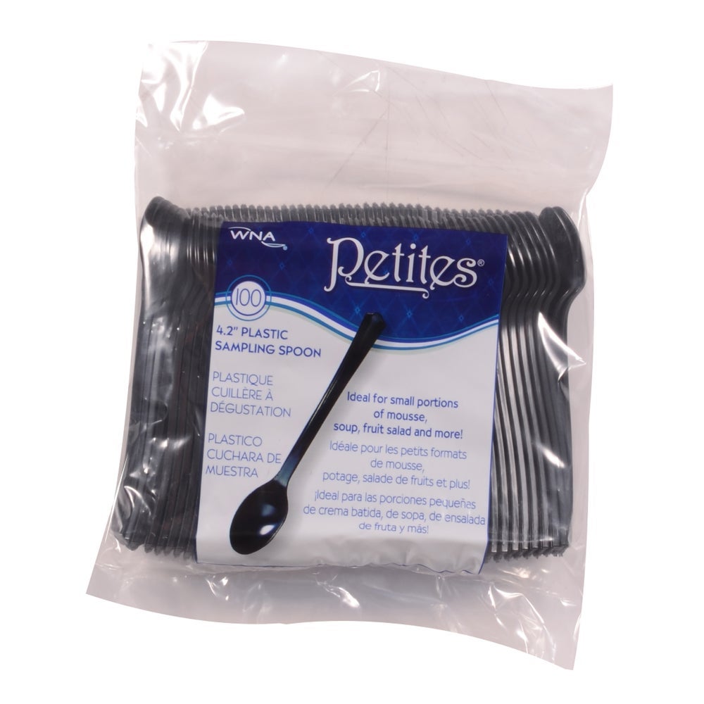 Cucharas de plástico para catas de peso pesado, negras, con asas de 4.2 pulgadas, poliestireno
