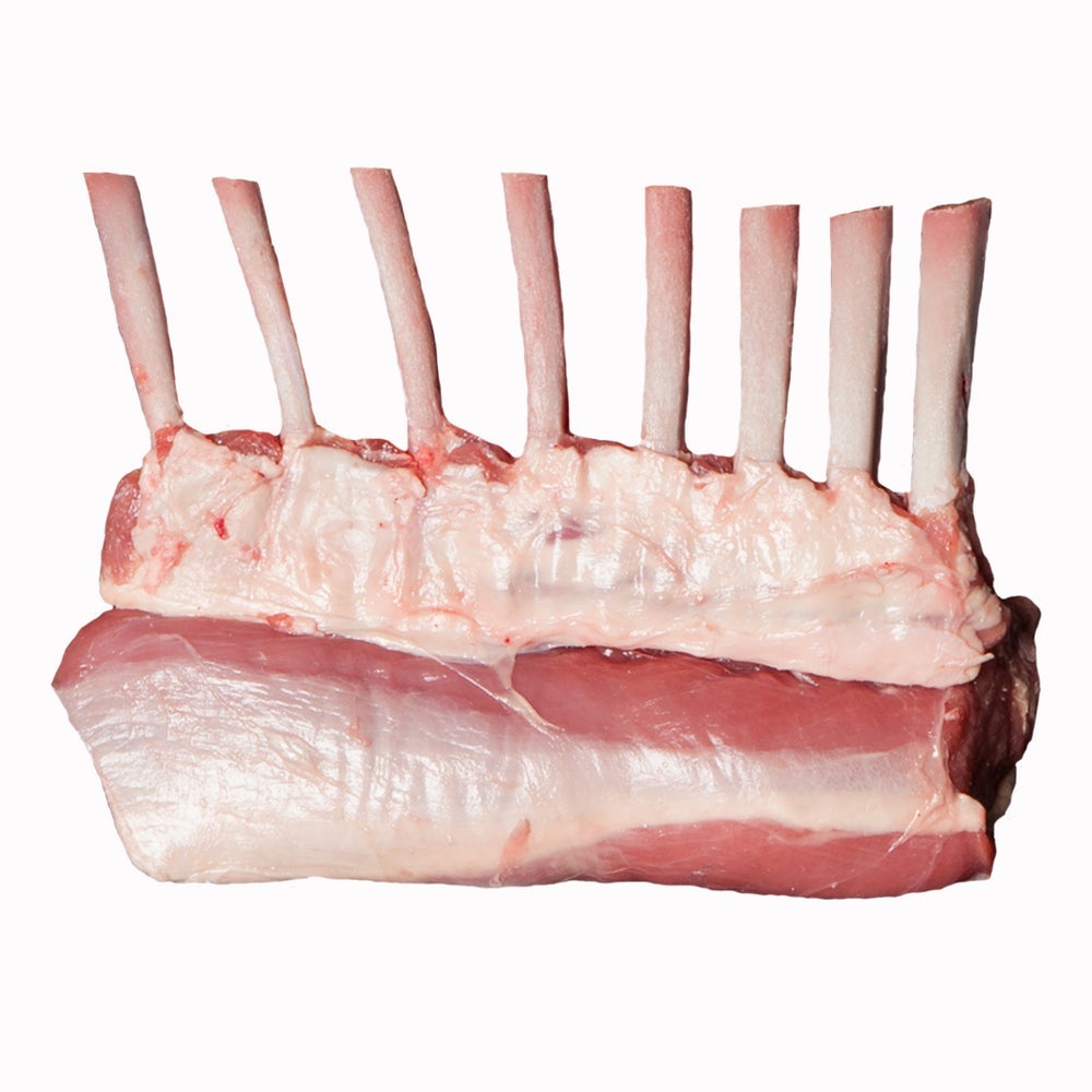 This New Zealand rack of lamb, also known as the hotel rack, is bone-in for dramatic presentation and great flavor. There are 8 ribs per rack, and each rib is frenched, removing the meat and fat from around each rib bone to improve plate appearance.