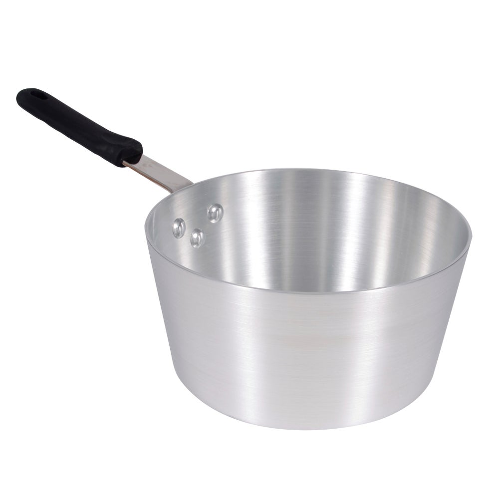 Esta olla de salsa de aluminio de 4.25 cuartos de galón es una herramienta versátil para remover, batir y preparar salsas. La construcción de alta resistencia proporciona fuerza y una distribución uniforme del calor.