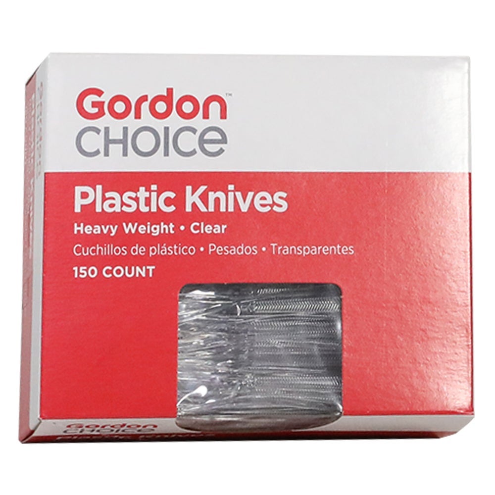 Cuchillos de plástico de calibre mediano a pesado, transparentes, con asas de longitud media, poliestireno, 150 Cdd Cjs, 14/Caj