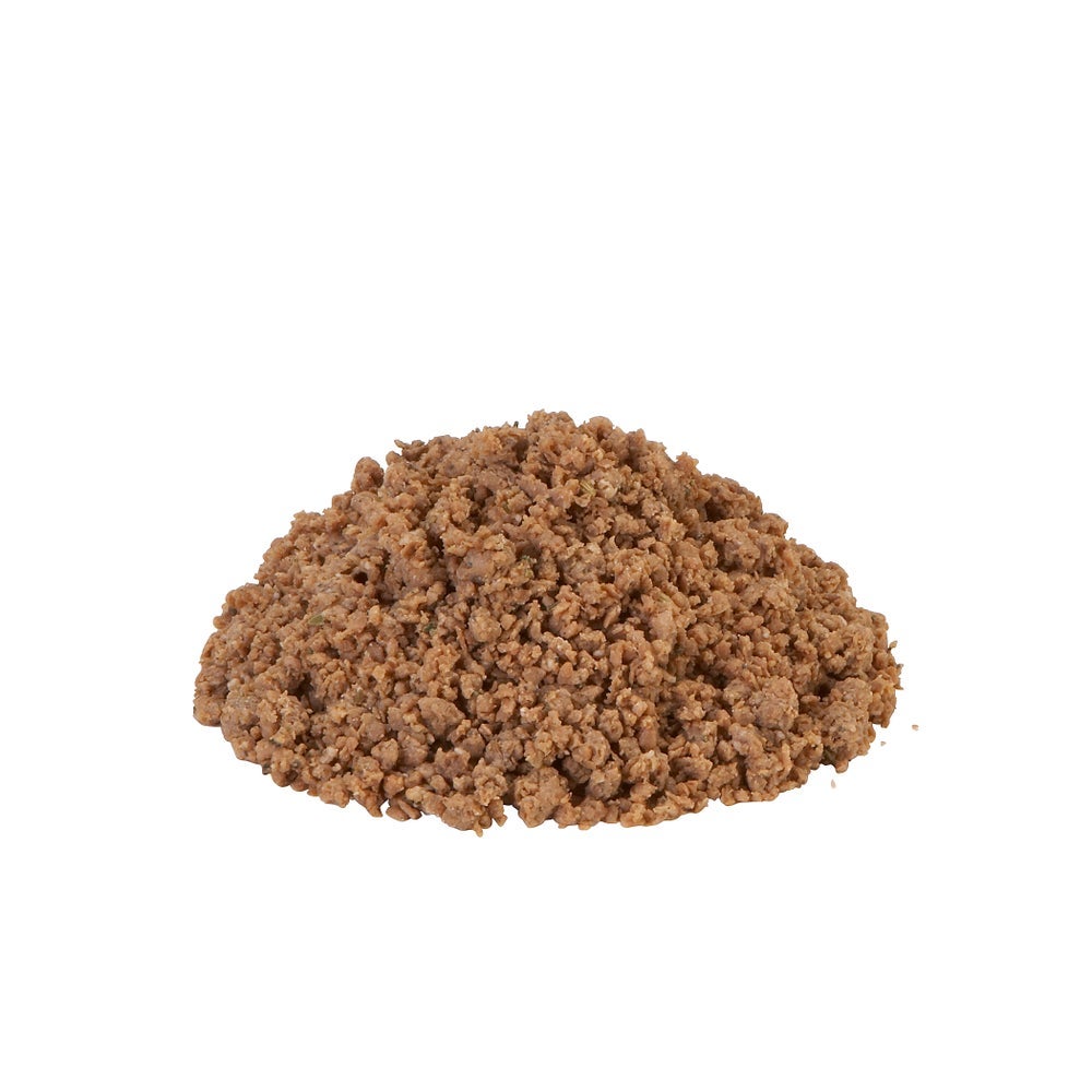 Oven-baked in an impingement oven to sharpen its flavor, this pork topping has a spicy Italian flavor ideal for pizza topping, sandwiches, grinders, and meat sauces. It is produced with fresh, not frozen meat for exceptional flavor.