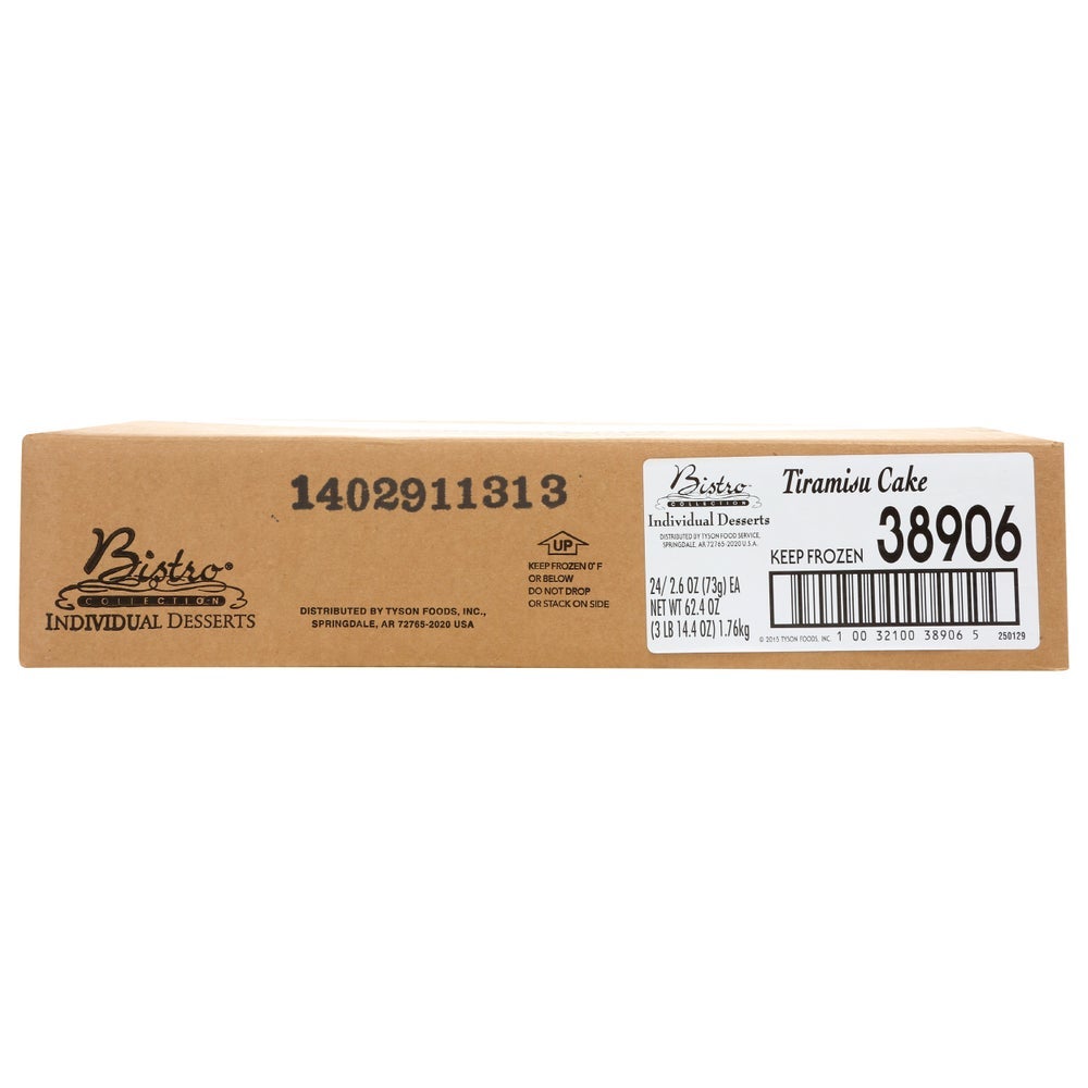 Pastelitos en capas mini de tiramisú, precortados, congelados, 2.6 onzas, 24 Cdd Ban, 1/Caj