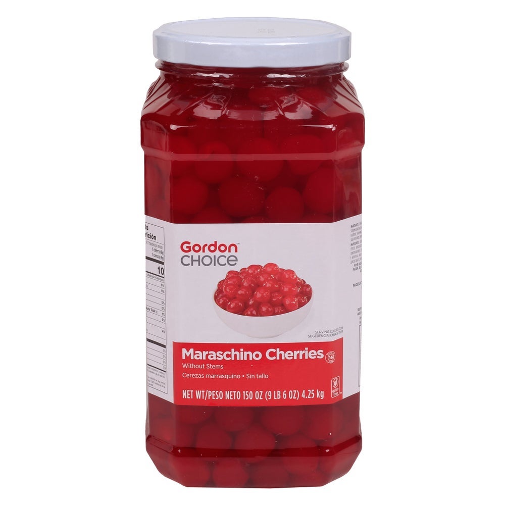 Gordon Choice Whole Red Maraschino Cherries, Without Stems, Plastic, 1 Gal, 4/Case