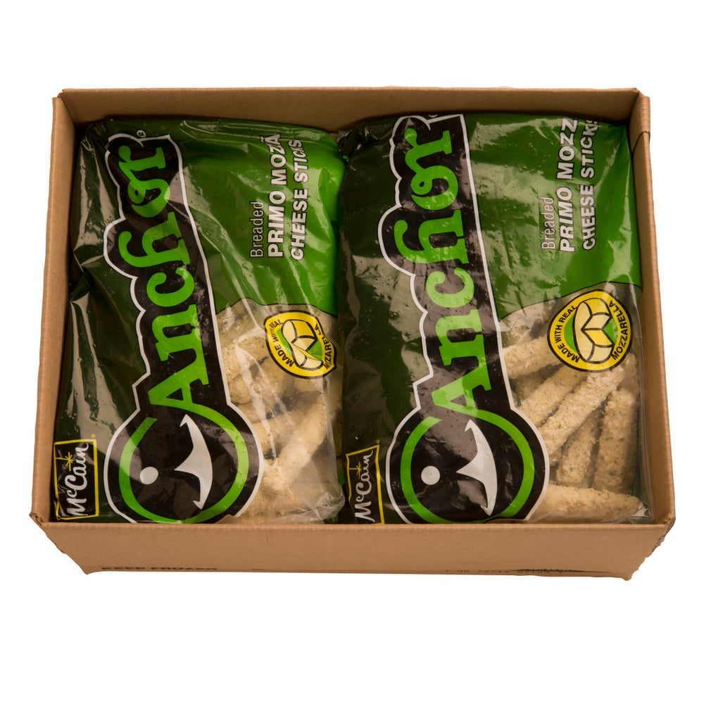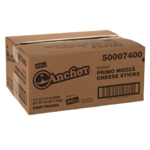 Anchor Garlic Butter Breaded Mozzarella Cheese Sticks, 4.5 Inch, Ovenable, IQF, 4 Lb Box, 4/Case