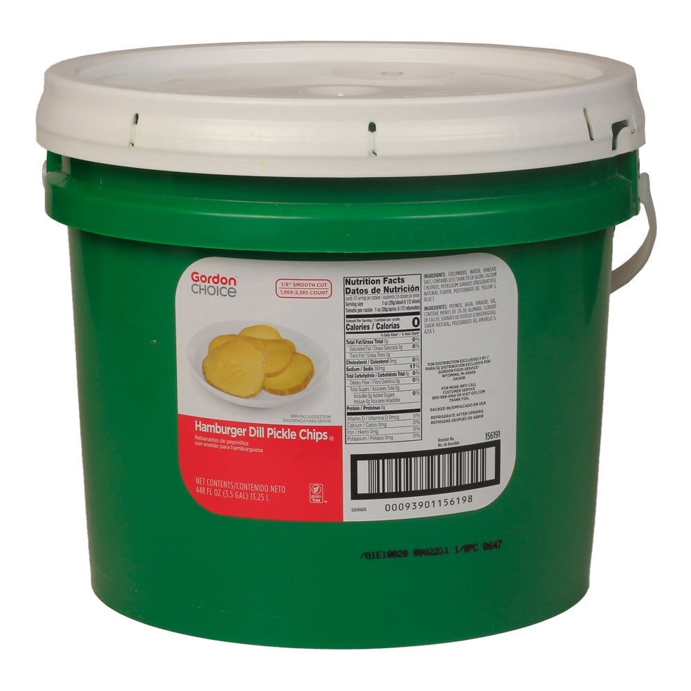 Gordon Choice Hamburger-Sliced Dill Pickle Chips, 1/8 Inch, 2000 Count, Plastic, 3.5 Gal, 1/Case