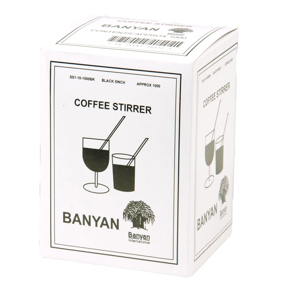 Banyan 5 Inch Plastic Stirrers, Ebony, Polypropylene, 1000 Ct Package, 10/Case