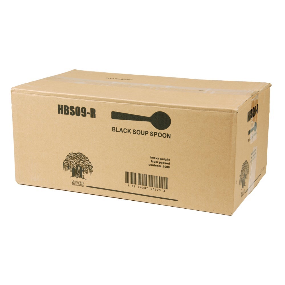 Banyan Heavyweight Plastic Soup Spoons, Black, with Full-Length Handles, Polypropylene, 1000 Ct Package, 1/Case
