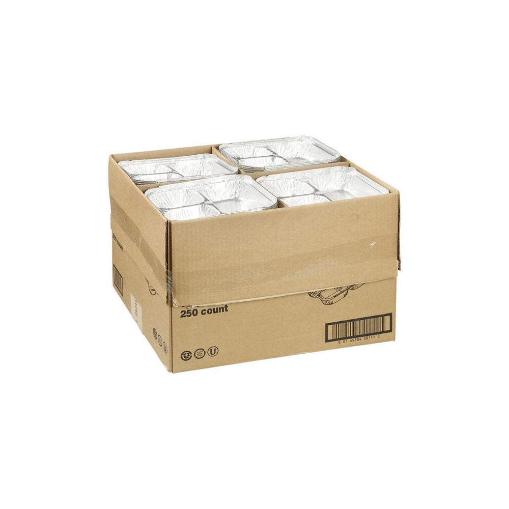 HFA 8.5 x 6.38 x 1.5 Inch Foil Containers, 3-Compartment, with Foil Board Lid, 250/Case