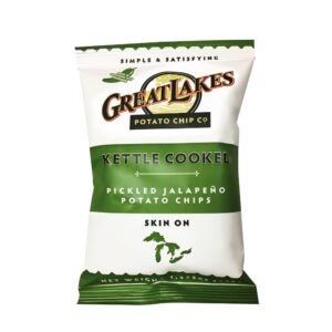 Great Lakes Potato Chip Co. Kettle Pickled Jalapeno Potato Chips, Skin-On, Single-Serve, 1.38 Oz Bag, 40/Case