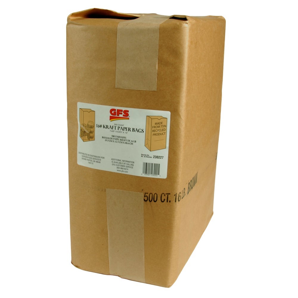 Gordon Choice #16 7.75 x 4.75 x 16 Inch Paper Bags, Kraft, 500 Ct Package, 2/Case