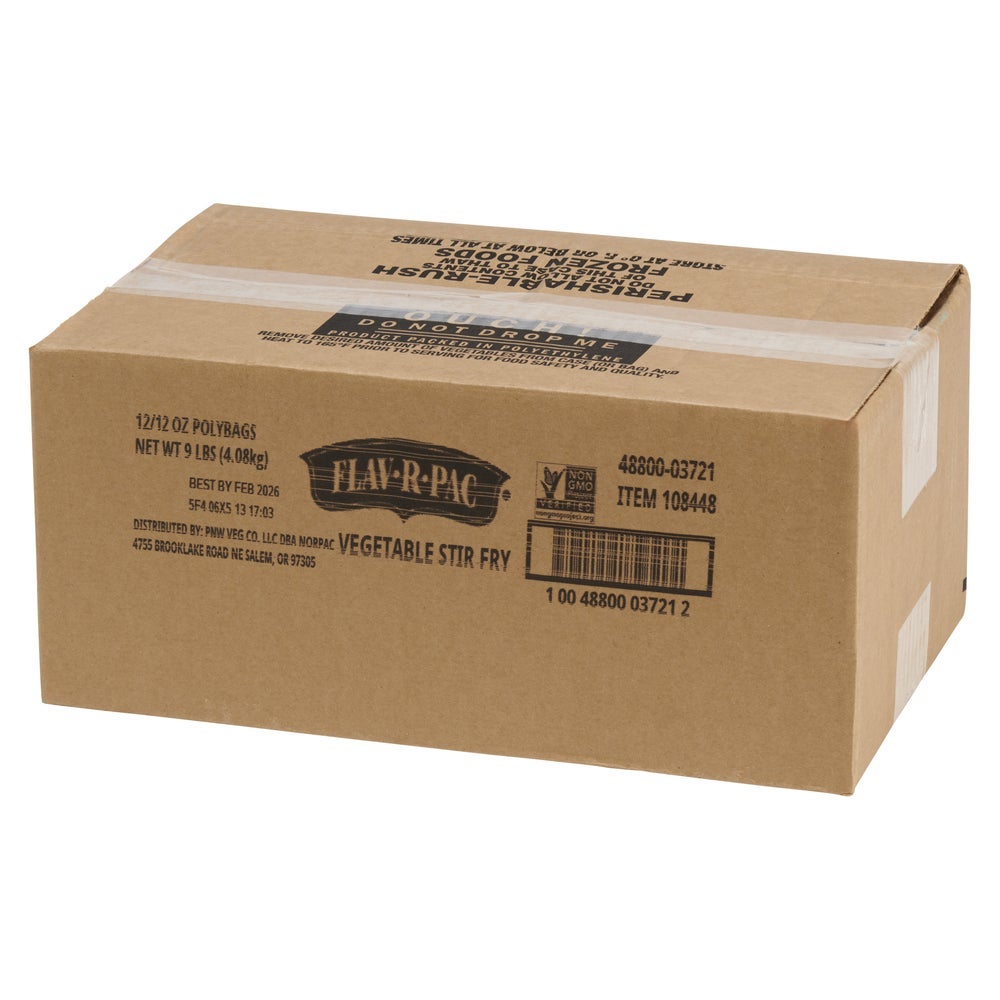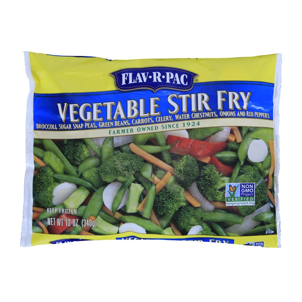 Flav-R-Pac Broccoli, Sugar Snap Peas Green Beans, Carrots Stir Fry Blend Frozen Vegatable, Celery, Water Chestnuts, Onions, Red Peppers, 12 Oz Bag, 12/Case