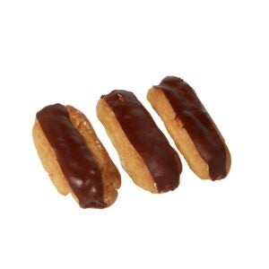 These eclairs are filled with Bavarian cream and have rich chocolate icing.