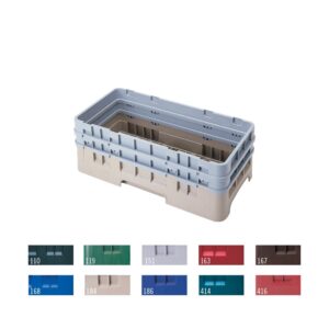 Cambro Camrack Dishmachine Base Racks, Customizable, 19.75 x 9.88 x 7.25 Inch, Half Size, Brown, with 2 Extenders, 4/Case