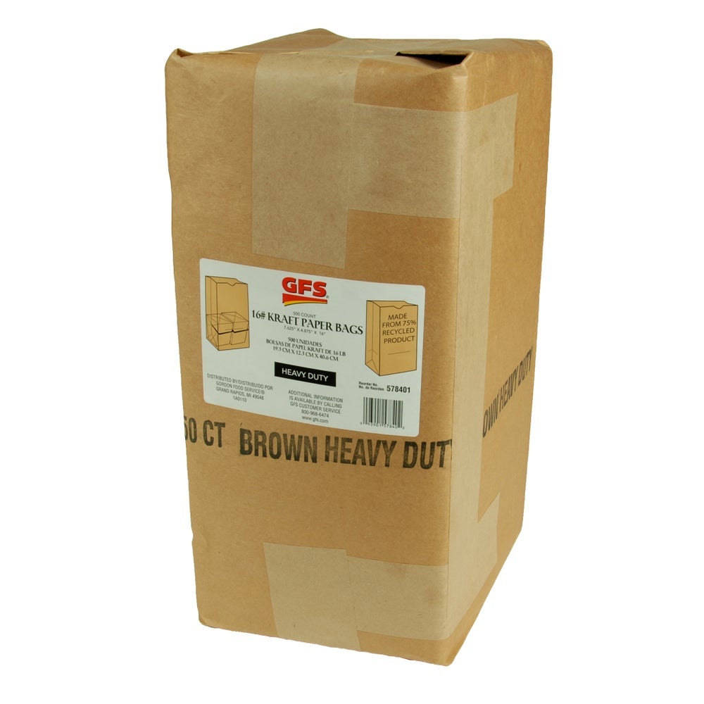 Gordon Choice #16 7.75 x 4.75 x 16 Inch Paper Heavy-Duty Bags, Kraft, 500/Case
