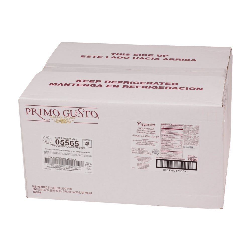 Primo Gusto Sliced Pepperoni, 10 Count per Ounce, Fresh, 25 Lb Bag, 1/Case