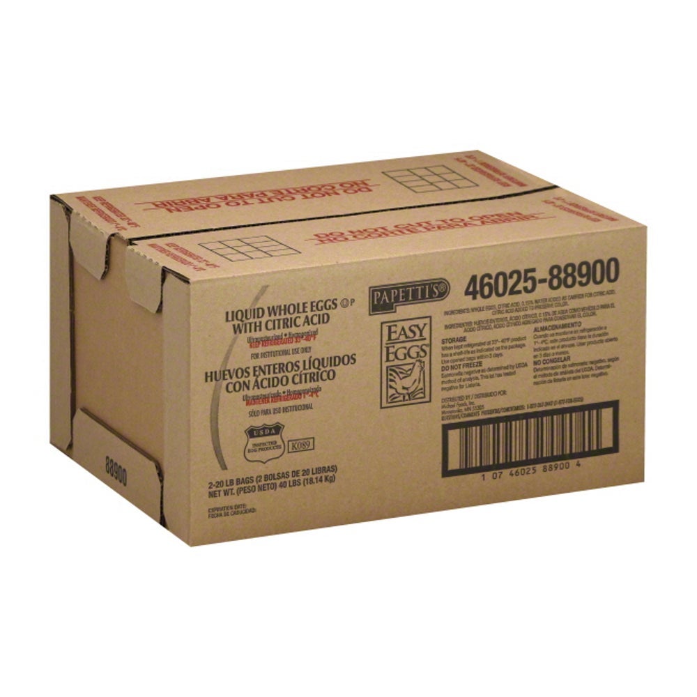 Papetti's Liquid Eggs, with Citric Acid, Pasteurized, Refrigerated, 20 Lb Box, 2/Case