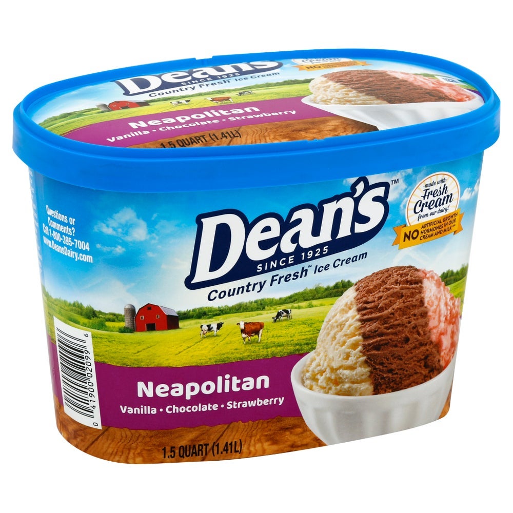 Dean's Country Fresh Premium Neapolitan Hard Serve Ice Cream, 48 Oz Tub, 6/Case