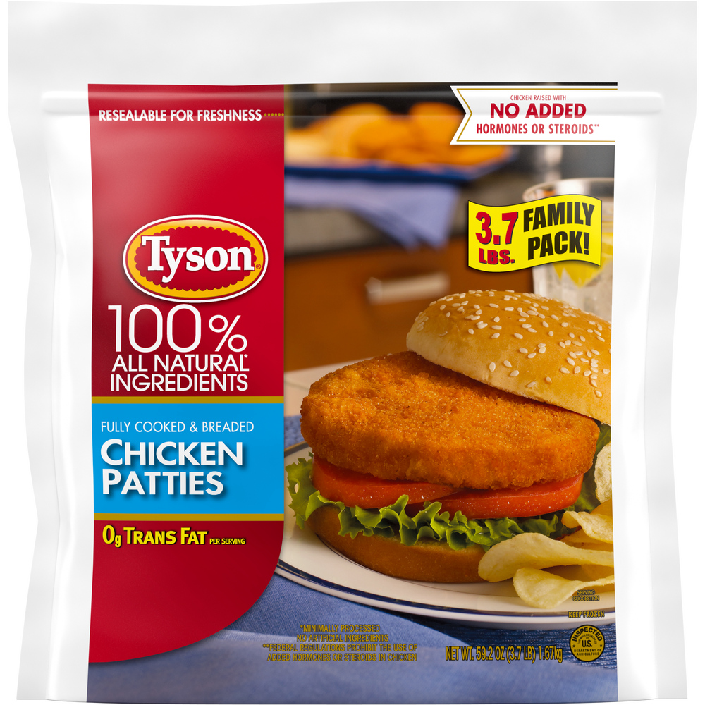 Tyson Fully Cooked & Breaded Family Pack Patties Chicken, 3.7 Lb Bag, 8/Case