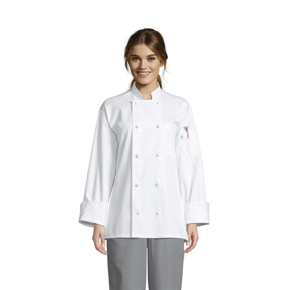Jacket, Chef, Long Sleeve, Classic Knot, White, 6X-Large, 100% Cotton Twill, 10 Inset Knot Buttons, Reversible Closure, with Mitered Breast Pocket