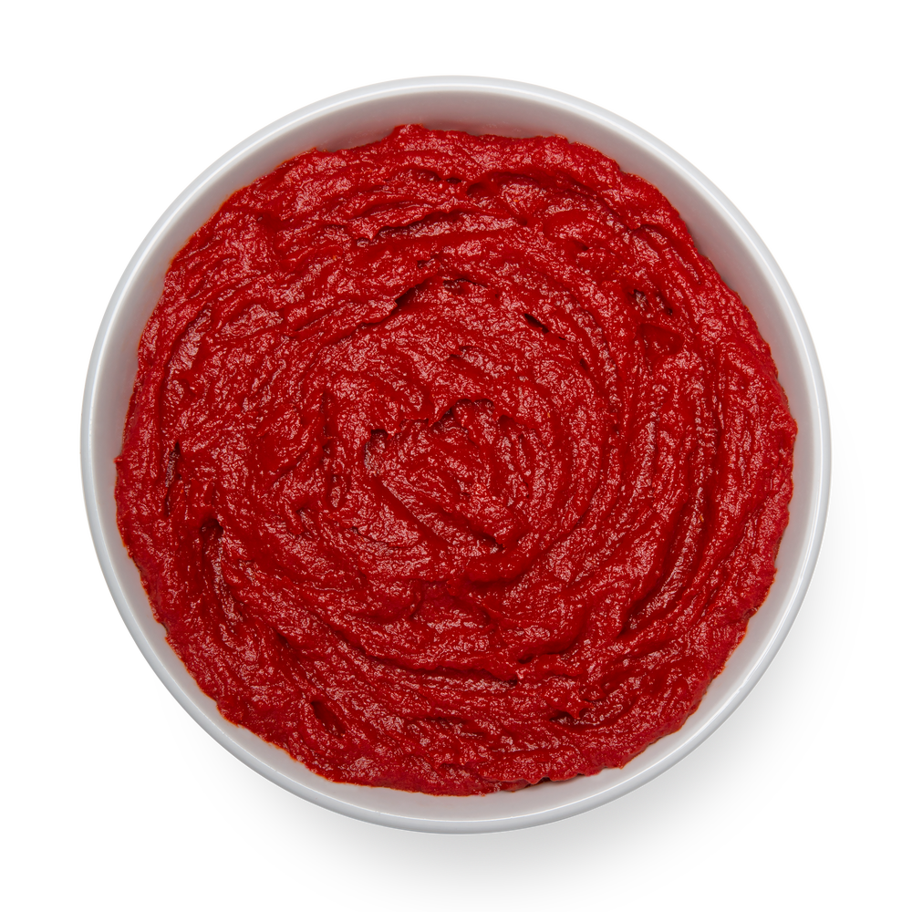 - Tomato paste is concentrated tomatoes with the seeds and skin removed. This delicious tomato paste has a fine finish and a smooth texture. It has the uniform bright red color that is typical of well-ripened tomatoes.