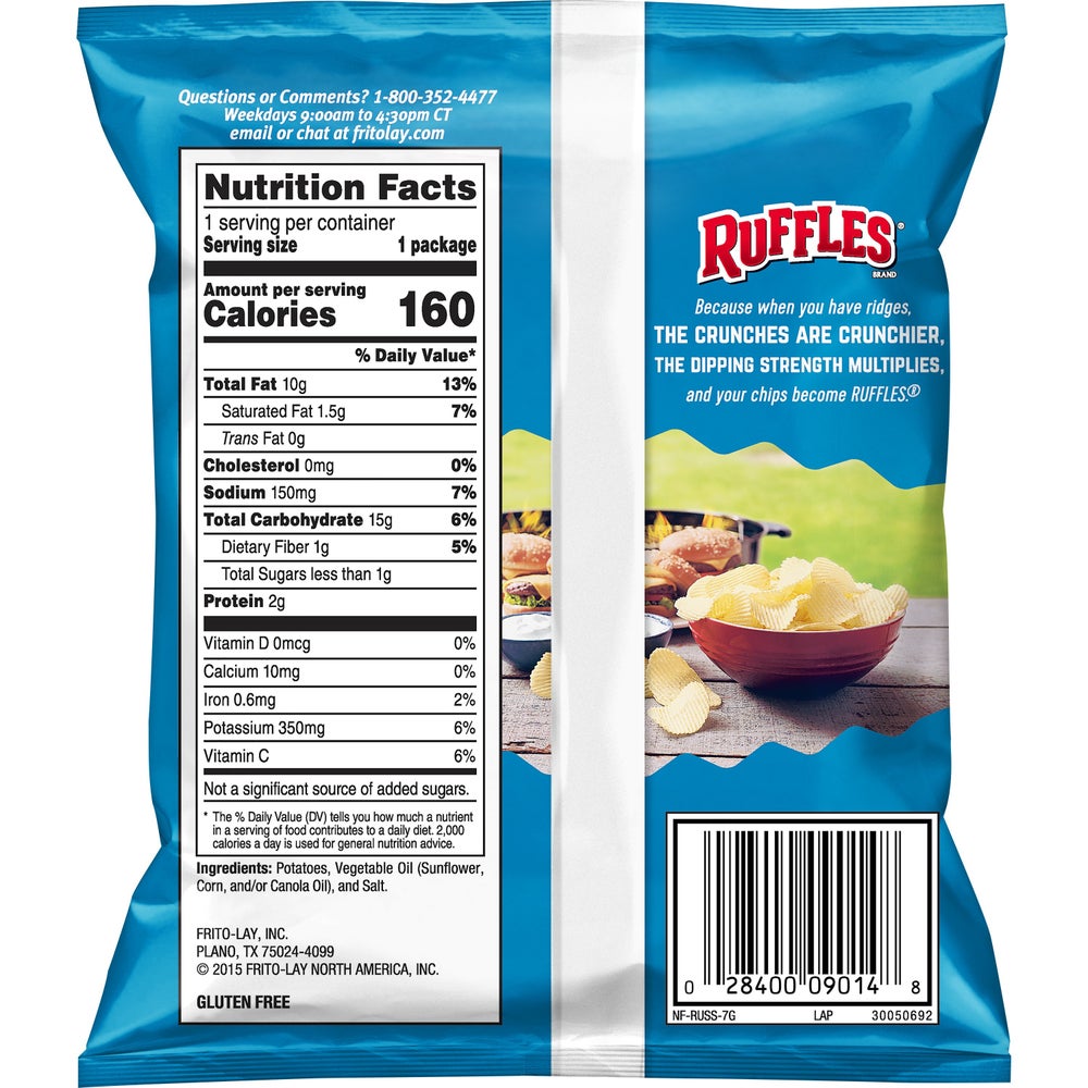 Ruffles Original Potato Chips, Single-Serve, 1 Oz Bag, 104/Case