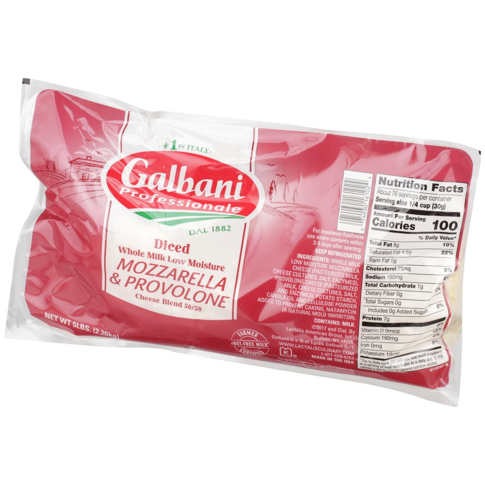 Galbani Whole Milk Cheese Blend, Mozzarella & Provolone, 5 Lb Package, 6/Case