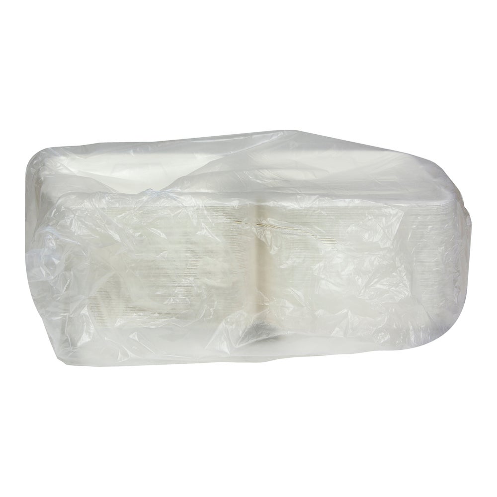 Earthchoice Large 9 x 9 x 3.5 Inch Molded Fiber 1-Compartment Containers, Natural White, Hinged, 75 Ct Package, 2/Case