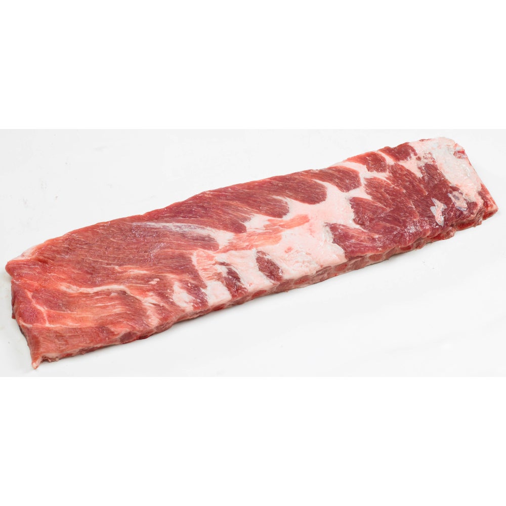 These competition-style, premium butcher-quality spareribs are hand-trimmed and squared up. Each slab offers consistent width, length, and overall meatiness and has no less than 11 bones.