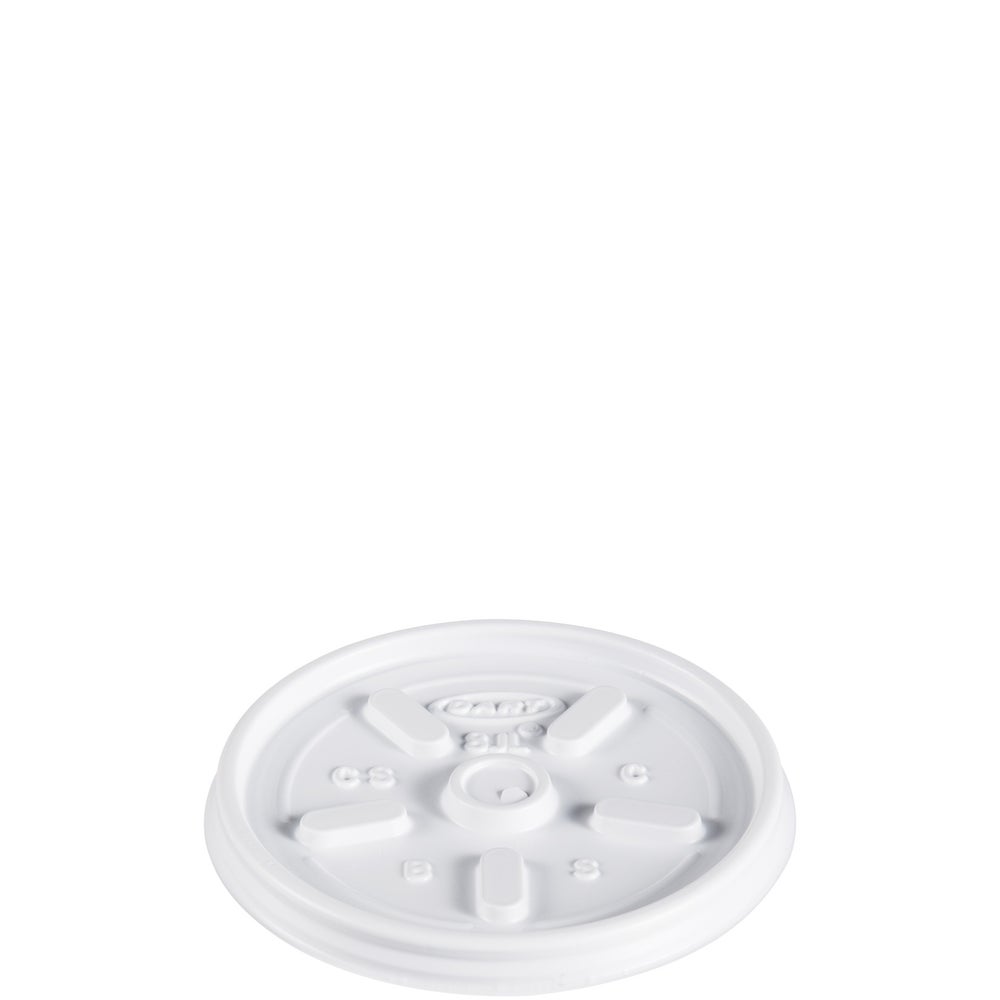 Dart Vented Plastic Lids, White, Polystyrene, for 8 Ounce Cups, 100 Ct Package, 10/Case