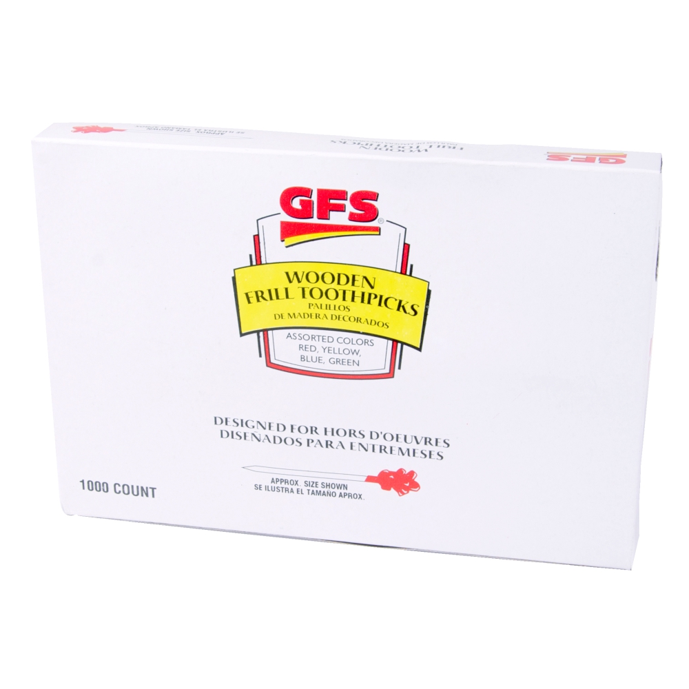 Toothpicks, Frilled, 2.5 Inch, Wood, Assorted Colors, 1000 Ct Package
