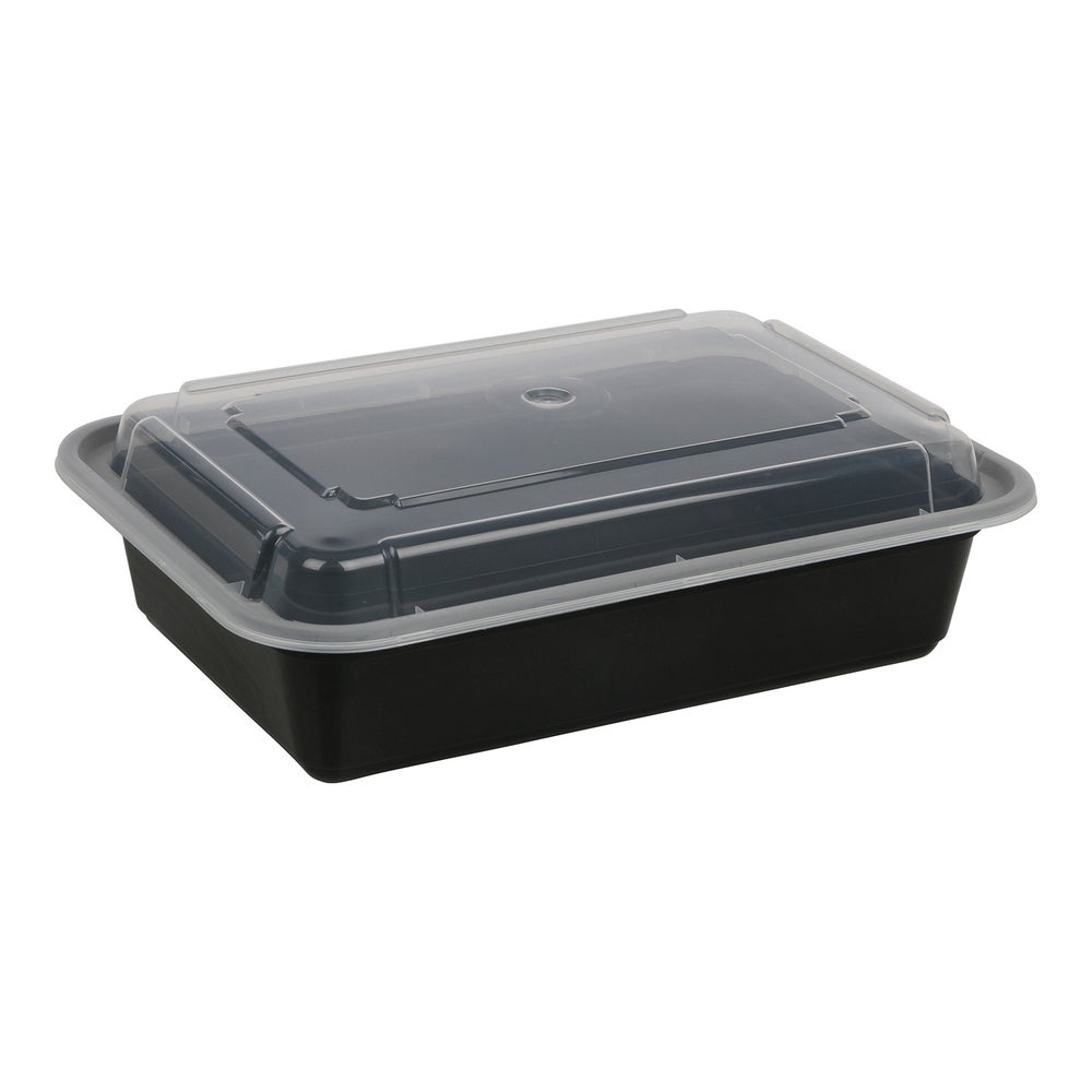 Newspring 38 Ounce Microwaveable Plastic Containers, Rectangle, Black, with Lids, Polypropylene, Versatainer, 150 Ct Bag, 1/Case