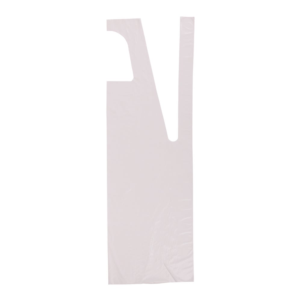 - To protect clothing inexpensively while performing messy tasks, these quality aprons have a soft, embossed texture for comfort. The pure-white aprons come in a durable, medium-weight poly material.