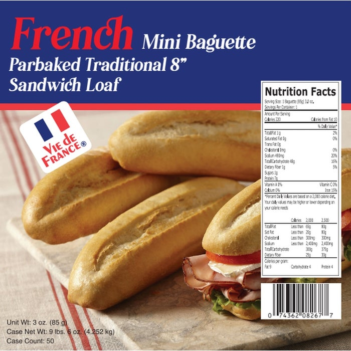 Vie De France 8 Inch French Baguette Bread, Mini, Frozen, 1 Each, 50 Ct Package, 1/Case