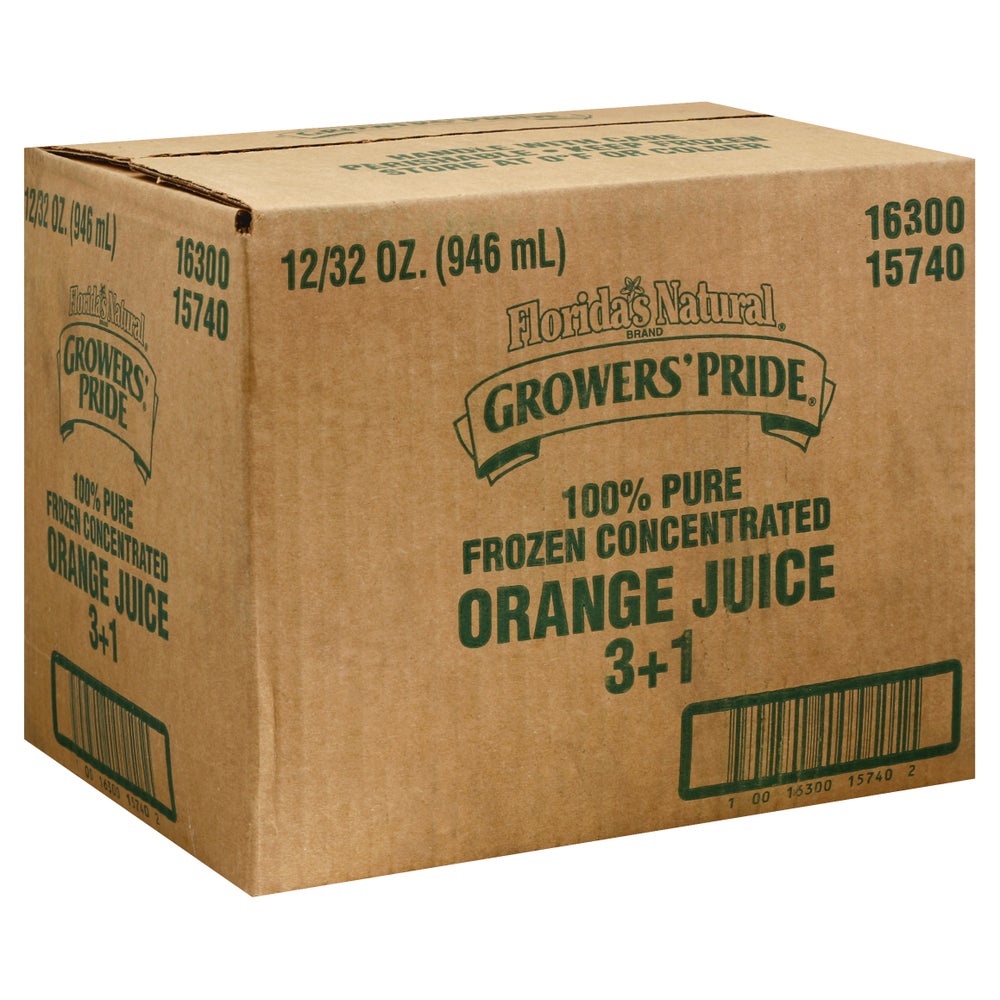 Growers' Pride 100% Orange Juice, 3 to 1 Ratio, Frozen, 32 Fl Oz Carton, 12/Case