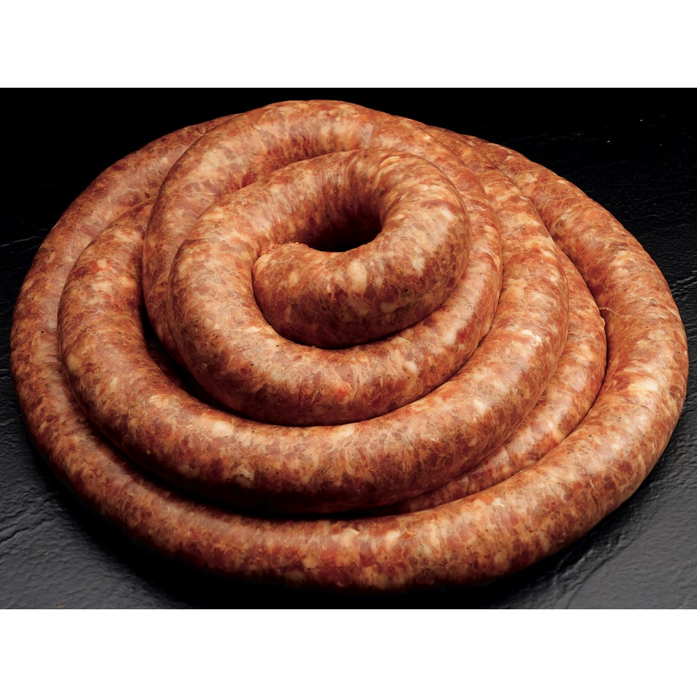 This sausage has a traditional spicy taste and aroma. It is made from premium cuts of pork with no fillers and has a coarse grind for great texture. The continuous natural hog casing gives a good snap to each bite.