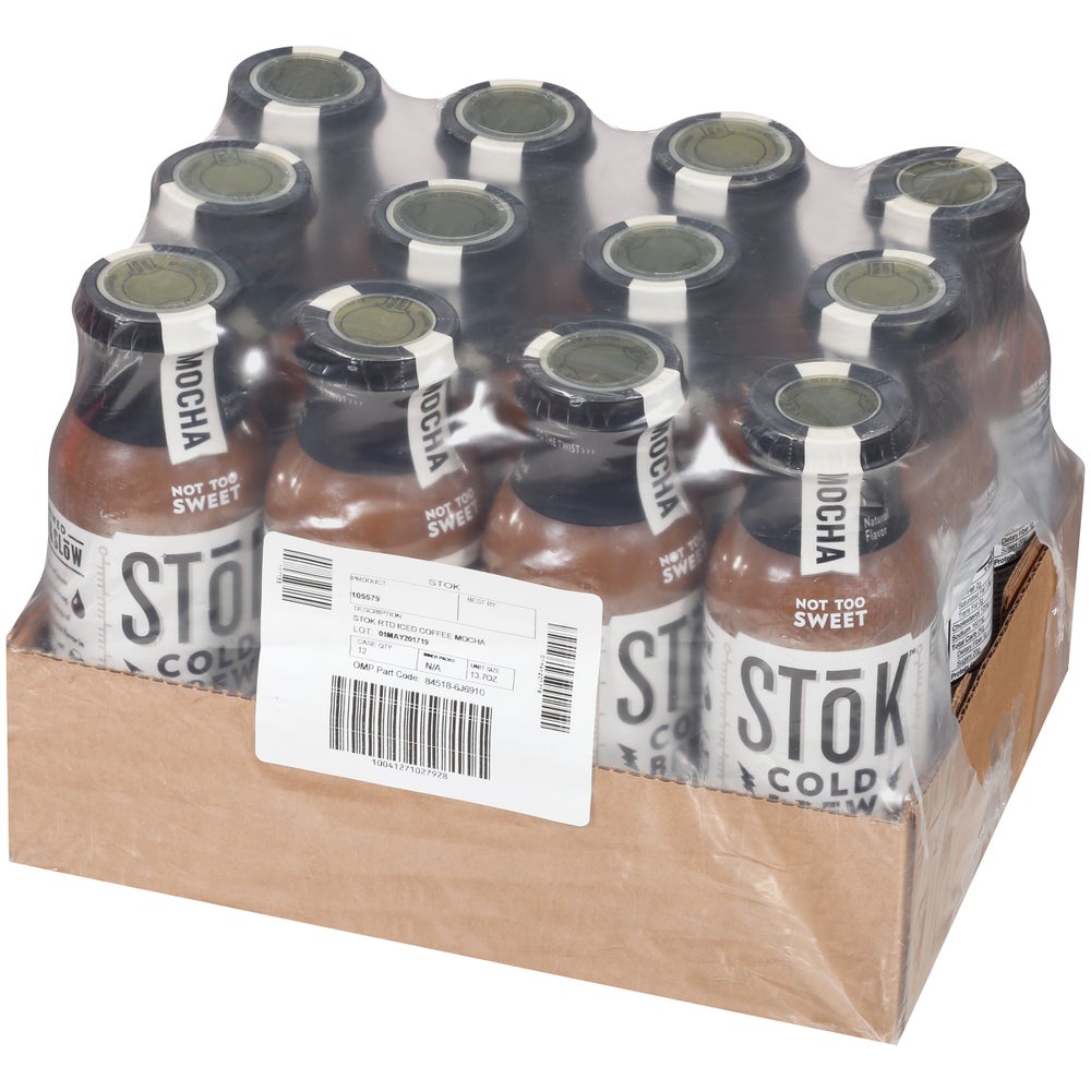 Stok Cold Brew Coffee Mocha Ready-to-Drink Cold Brew Coffee, Single-Serve, Glass, 13.7 Fl Oz Bottle, 12/Case