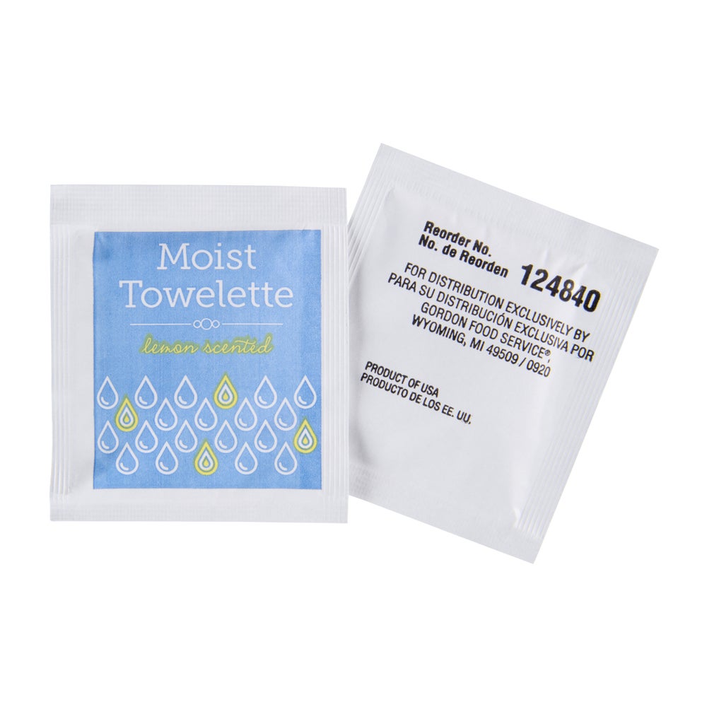- These moist, lemon-scented towelettes are individually wrapped so they stay moist and sanitary. FDA-approved, these large, soft and thick towelettes are perfect for cleaning hands before and after meals. The fresh lemon scent is energizing and pleasant.