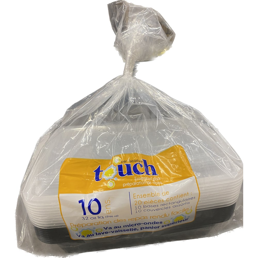 Touch 32 oz Plastic Rectangle Containers, 10 Ct Package, 6/Case